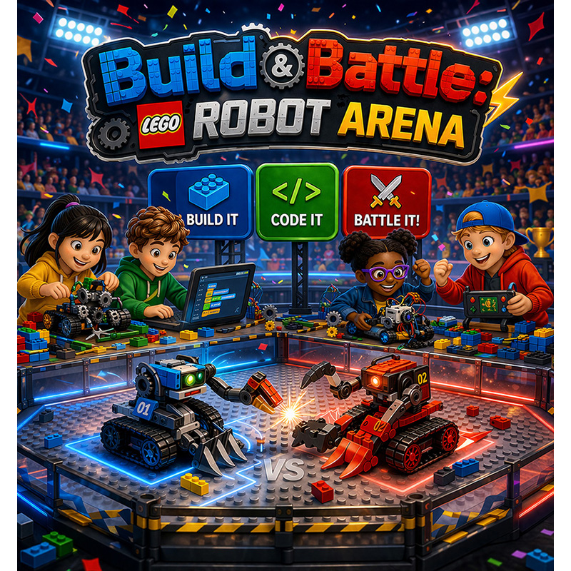 Think you can build the ultimate battle bot? In this action-packed workshop, students build and program their own LEGO robots from scratch. Along the way, they'll experiment with motors and gears, learn basic coding concepts, and figure out what makes a robot tough enough to stay in the fight. No experience needed, just curiosity and a willingness to get stuck in!