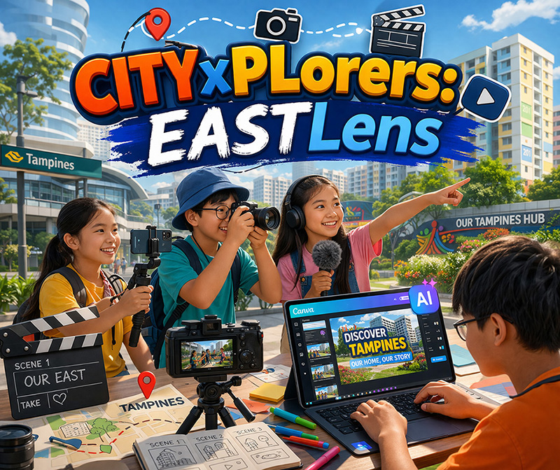 Explore the beautiful heartland of Tampines through a creative lens in this hands-on learning journey! Students will discover the basics of filming while capturing the neighbourhood sights. Using Canva and AI tools, they will also learn how to design thumbnails and shape their video scenes into a story. Join us for a fun mix of storytelling, tech, and adventure! So let's explore the EAST!